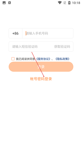 3、进入登录界面后,可选择账号密码登录,切换至对应界面。