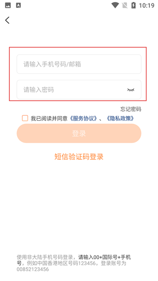 4、进入账号密码登录界面,填写手机号/邮箱、密码,勾选协议后点击“登录。