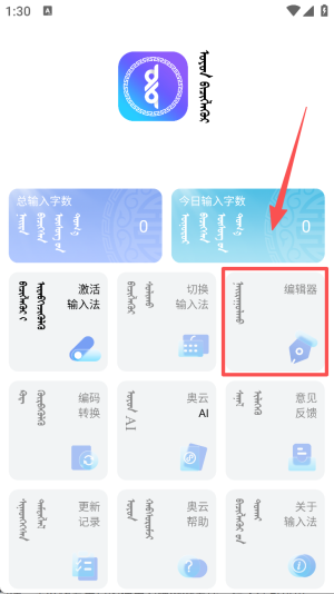 2、进入奥云输入法界面,点击编辑器选项,可进入奥云输入法编辑器进行相关操作。