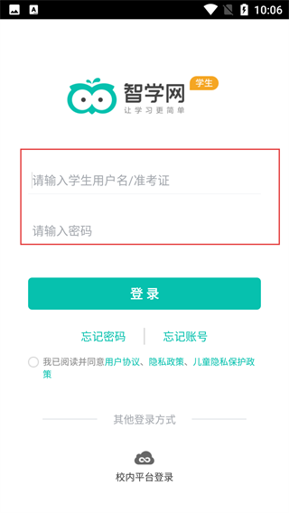 3、勾选“我已阅读并同意用户协议、隐私政策、儿童隐私保护政策”选项,确认信息无误后,点击“登录”按钮,进入应用主界面。
