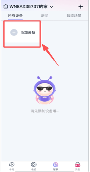 2、点击“我的”进入智家,确认所有设备后选添加设备功能。