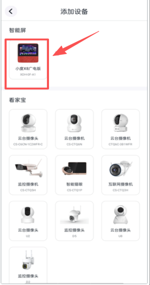 3、在列表选小度X8广电版,确认型号后等待扫码绑定页面。