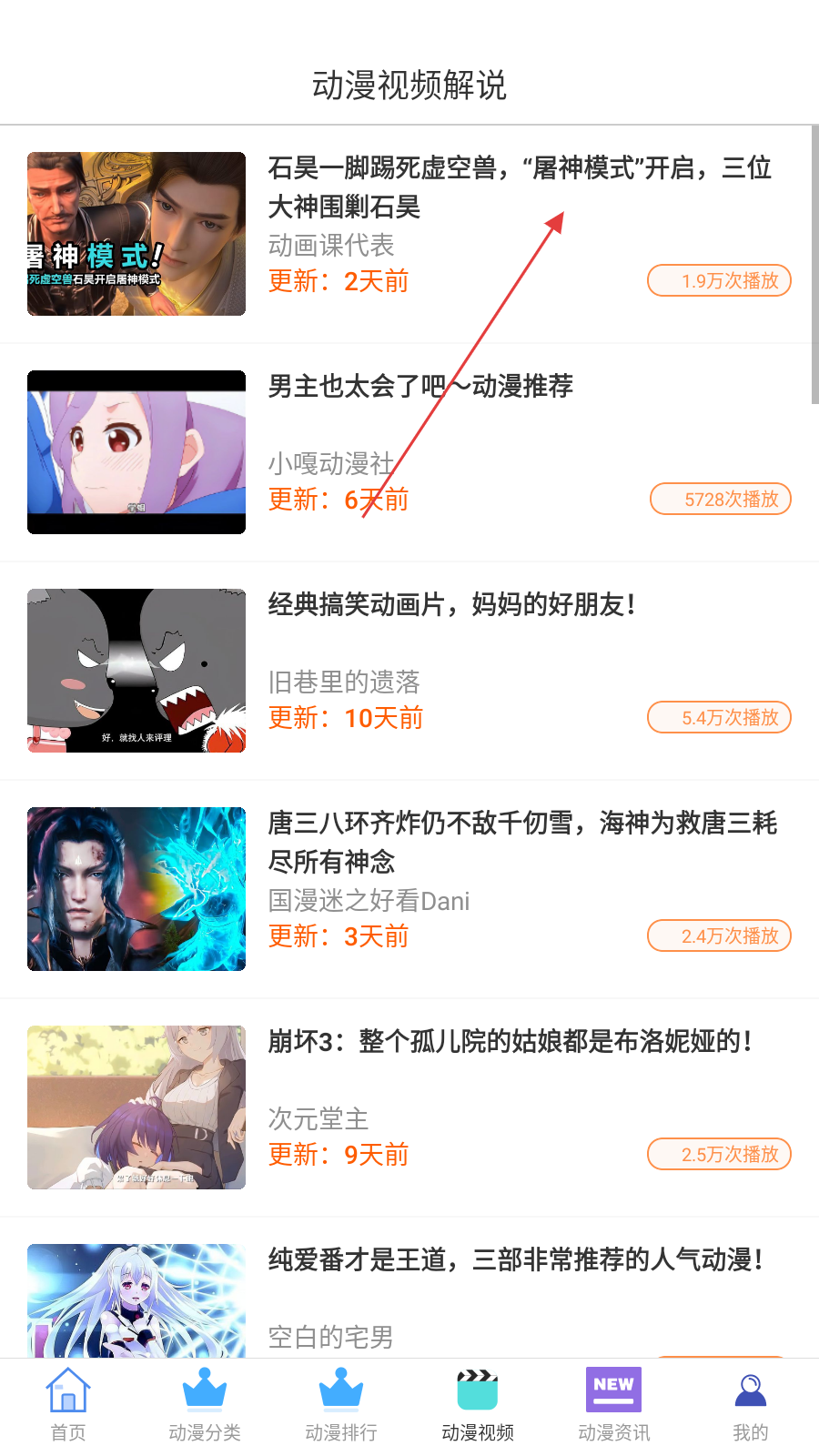 3、进入【动漫视频】界面,可获取《石昊一脚踢死虚空兽-“屠神模式”开启-三位大神围剿石昊》等动漫视频解说,及时掌握动漫剧情动态。