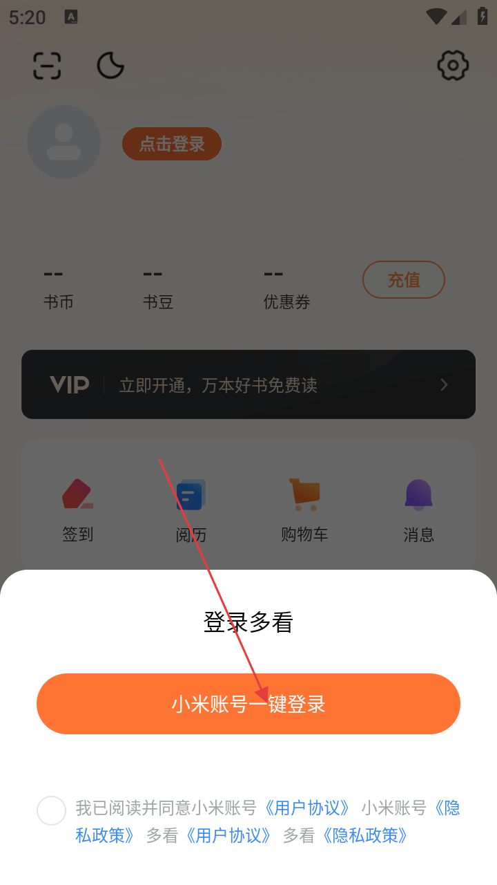 4、在小米账号登录界面,输入手机号并勾选同意协议,即可完成登录,享受阅读、藏书等服务。