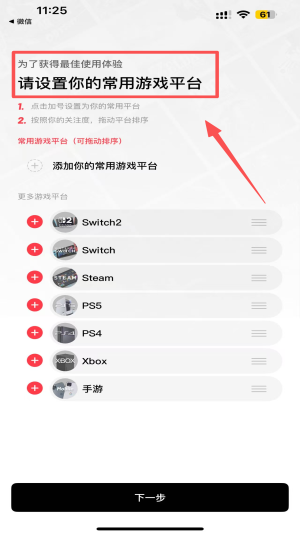 1、点击“添加你的常用游戏平台”按钮,选择并添加你的游戏平台。