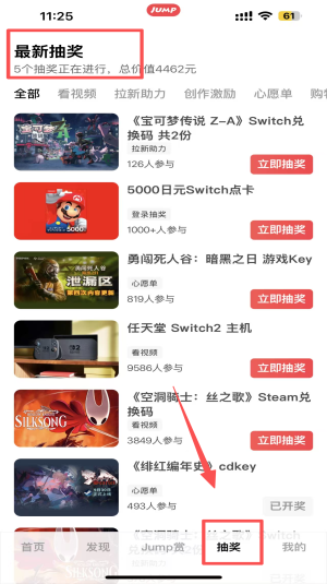 4、在抽奖页面点击“立即抽奖”,参与游戏抽奖活动。