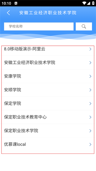 3、在学校选择界面,可通过搜索框输入或直接从列表中选定目标学校。