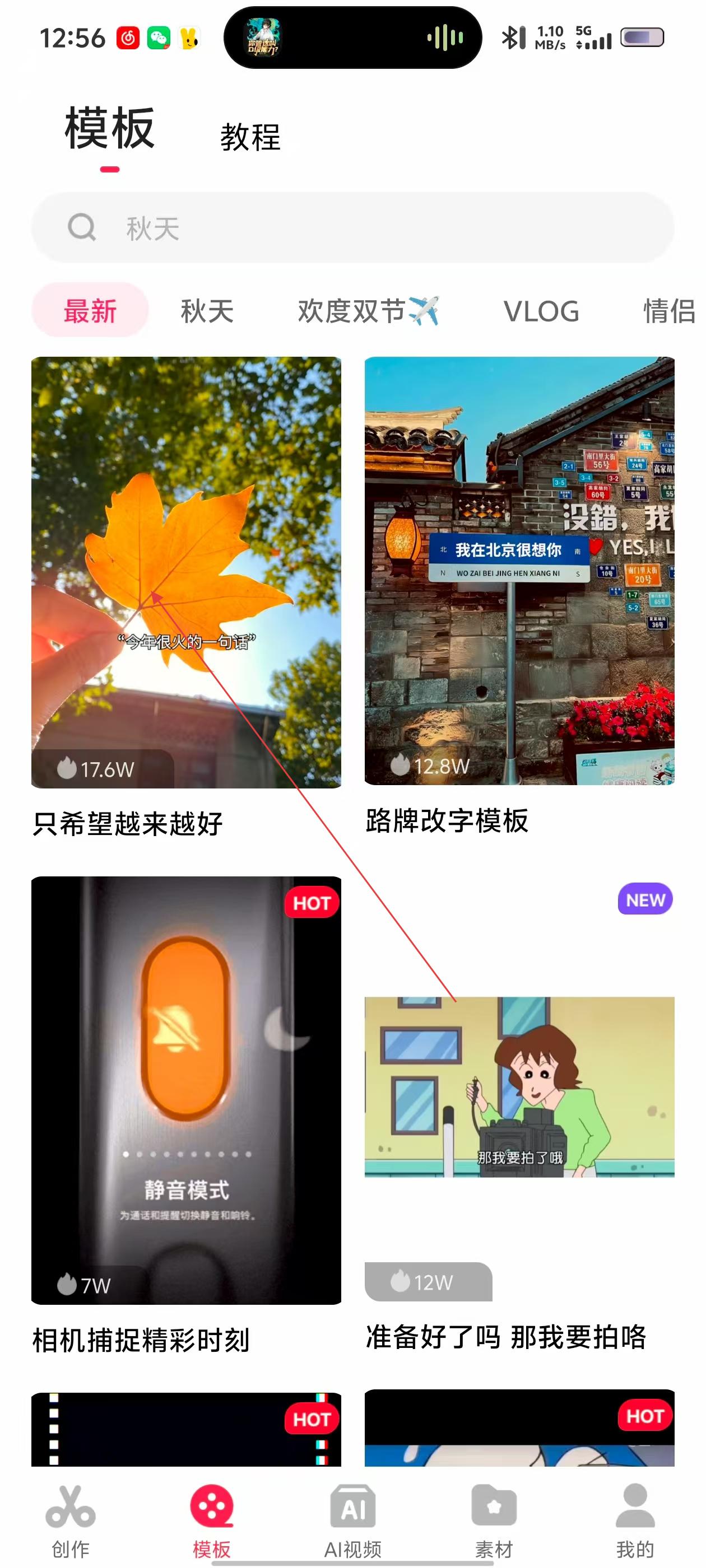 2. 进入模板页面,浏览各类模板,找到想要使用的模板,比如“只希望越来越好”模板,点击该模板。