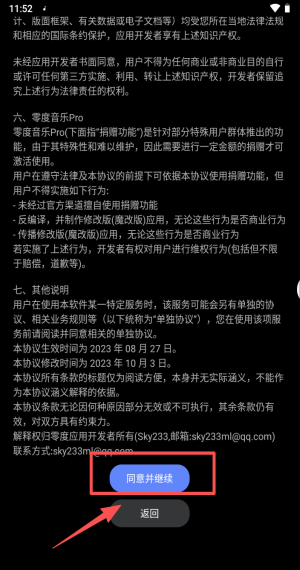 1、阅读协议后点“同意并继续”,确认捐赠规则与反编译限制再进入。