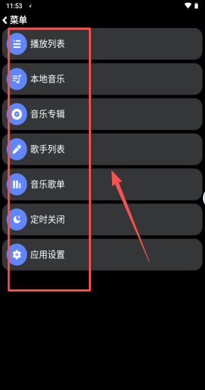 4、打开菜单选“本地音乐”或“音乐歌单”,再点定时关闭安心听歌。