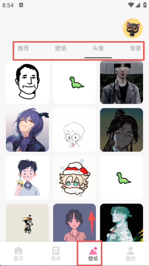 3、在 “壁纸” 板块中,切换不同分类标签,能浏览对应类别的素材,比如 “推荐” 分类下的内容。