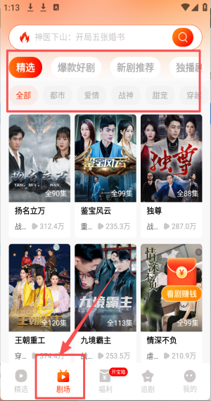 1、在精选页面,点击“精选”按钮,浏览推荐视频分类。