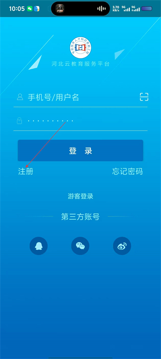 3、若未注册账号,点击登录页的【注册】选项,进入信息填写界面。