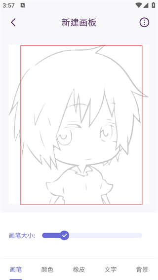 3、在新建画板界面,可调整画笔大小,选择画笔、颜色等工具进行漫画创作。