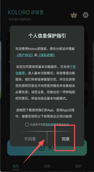 1、打开应用阅读个人信息保护指引后点击同意进入主界面。