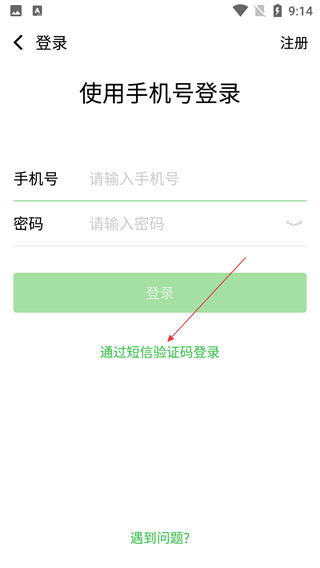 3、在登录页面选择【通过短信验证码登录】选项,进入验证码登录页面,输入对应的手机号。