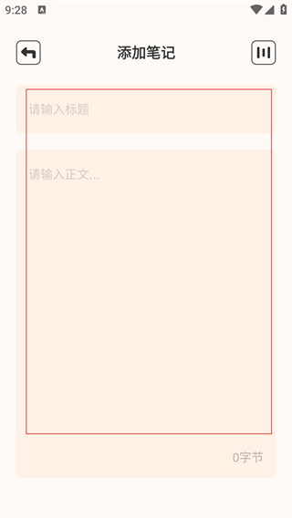 3、在添加笔记页面输入标题和正文,编辑阅读笔记内容。