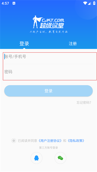 3、在登录界面,依次填写【账号/手机号】与【密码】,完成信息录入。