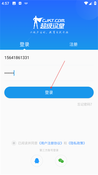 4、勾选【已阅读并同意】协议后,点击【登录】按钮,完成账号登录,进入应用功能页。