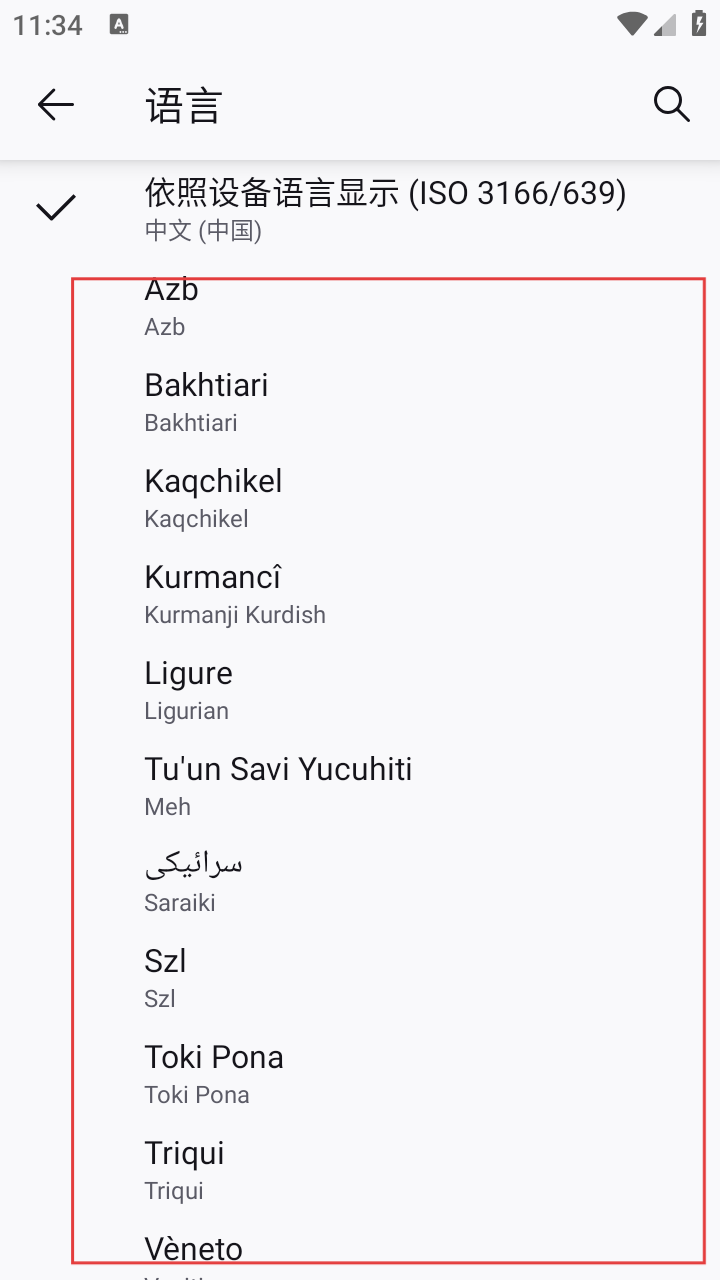 4、在语言设置界面,可选择【Azb】【Bakhtiari】等不同语言,更改浏览器的显示语言。