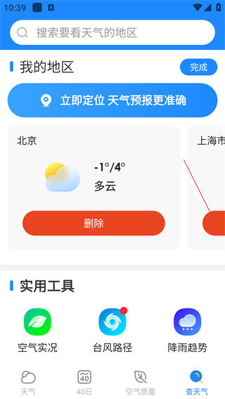 3、编辑模式下,已添加城市(如北京)会显示“删除”按钮,点击可移除该城市;也可对其他城市进行同类操作。