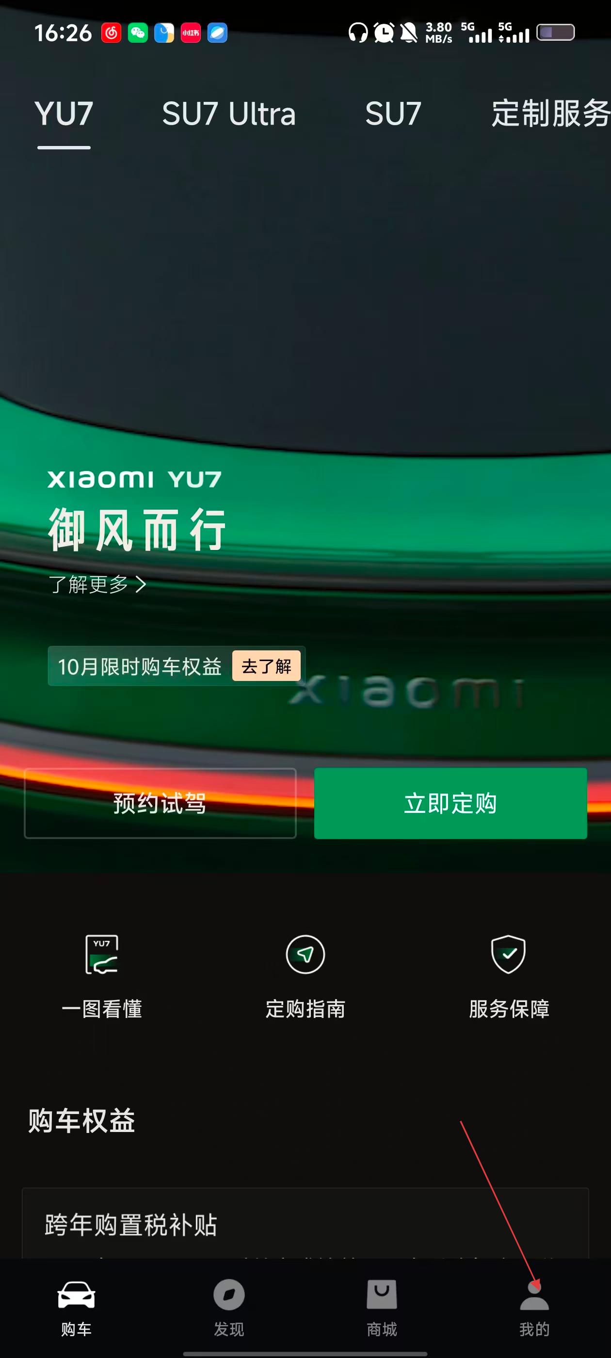 1、在小米汽车APP首页,点击右下角【我的】按钮,可进入个人中心,查看订单、积分、卡券等功能入口。