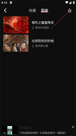 2、进入【我的】页面后,点击【历史记录】选项,可查看之前观看过的影视内容记录。