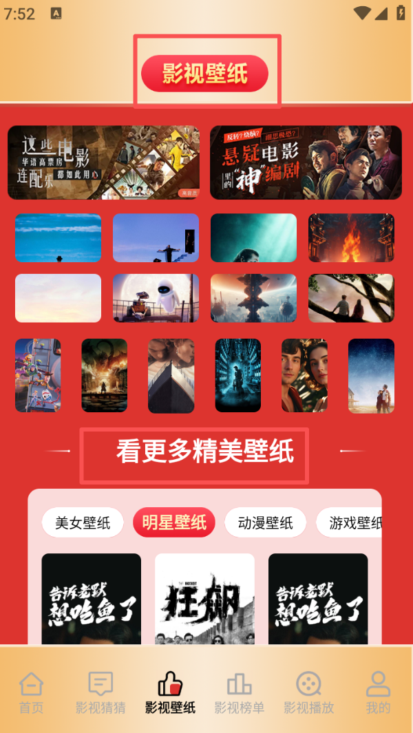 2、切换到影视壁纸页面,能欣赏各类影视主题壁纸,还可查看更多精美壁纸。