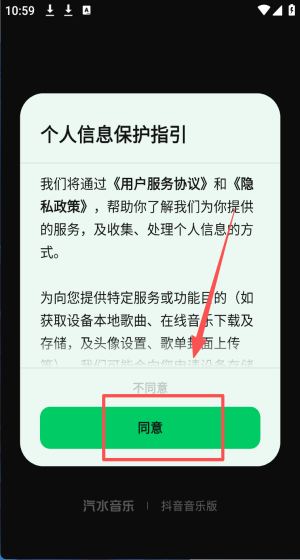 1、首次打开点击“同意”授权,允许访问本地歌曲及存储空间。