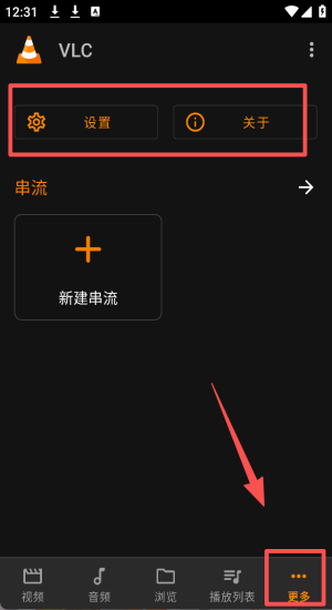 1、打开VLC后点击底部“浏览”,进入文件管理器准备寻找媒体文件。