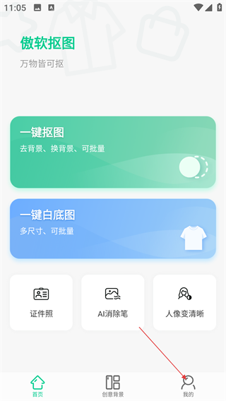 1、使用【傲软抠图】时,进入首页面,点击底部的【我的】。