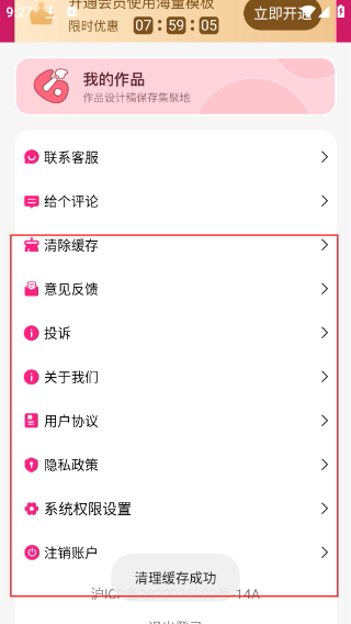 4、页面提示“清理缓存成功”,即完成应用缓存的清理。