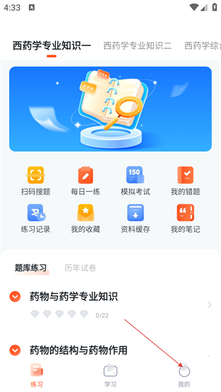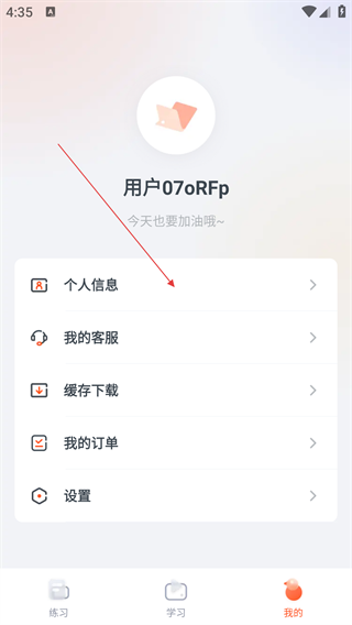 1、在APP的练习页面,点击底部【我的】,进入个人中心界面。