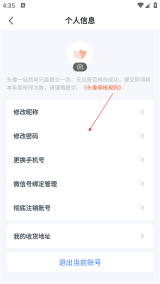 3、在个人信息页面,点击【修改密码】,进入密码修改界面。