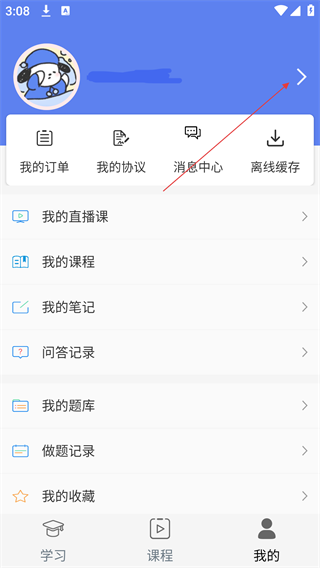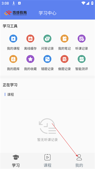 1、在【学习中心】界面,点击底部导航栏的【我的】,进入个人页面。