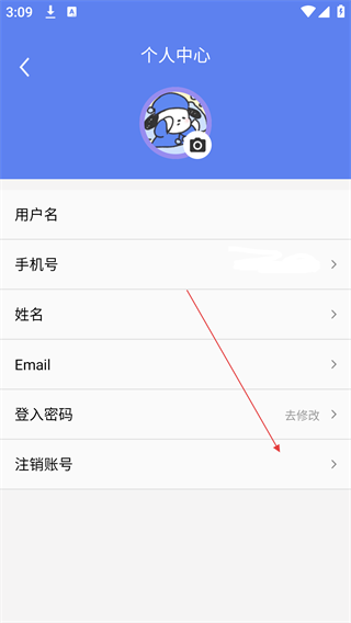 3、在个人中心,选择【注销账号】选项,触发注销确认提示框。