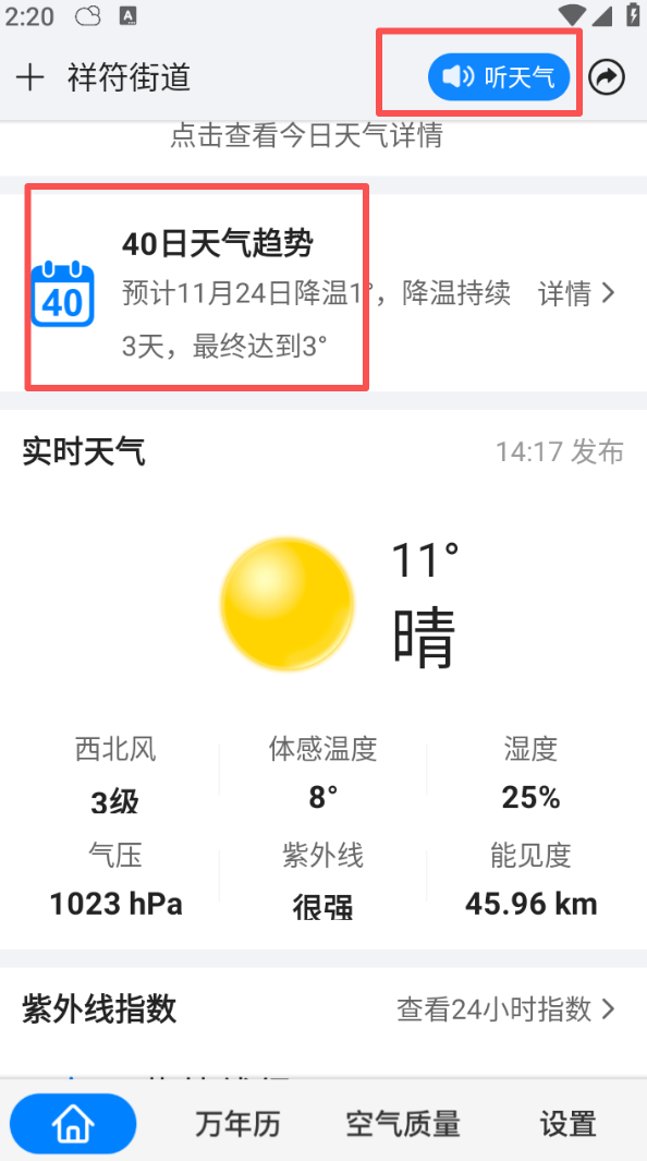 2、在首页点击 “40 日天气趋势”,能了解近段时间的气温变化走向,提前做好应对准备。