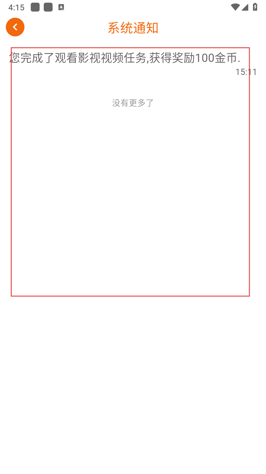 4、在【消息盒子】中点击【系统通知】,可查看任务完成奖励等信息,如完成观看影视视频任务能获得金币奖励。