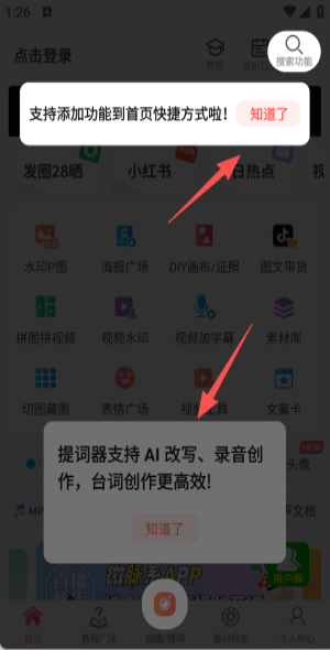 3、回首页点“开通VIP”,再选水印P图或AI提词器开始创作。