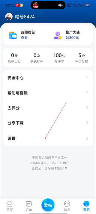2、在个人中心页面,选择【设置】选项,进入设置界面。