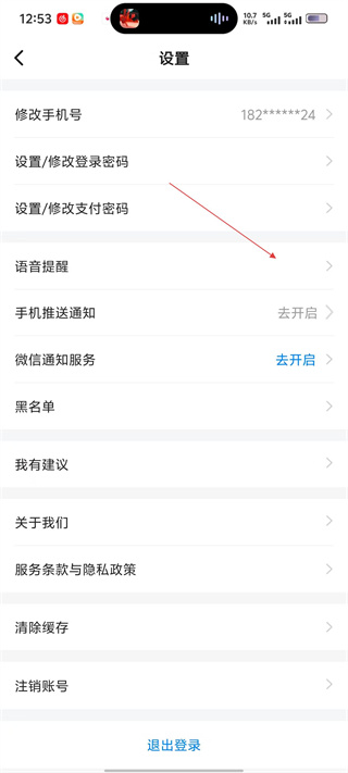 3、在设置界面,点击【语音提醒】选项,进入语音提醒配置页面。