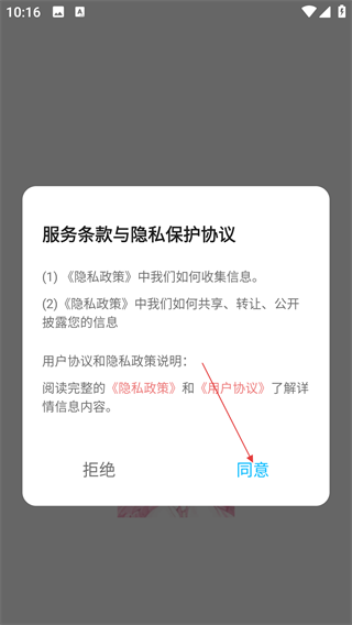 1、使用前需阅读【服务条款与隐私保护协议】,了解【隐私政策】和【用户协议】后点击【同意】,方可进入软件。