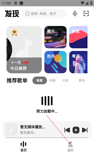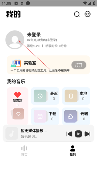 1、进入音乐软件后,点击右下角【我的】,进入个人中心页。