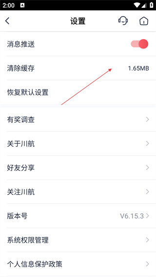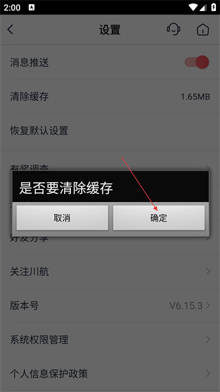 3、在设置页,点击【清除缓存】选项,触发“是否要清除缓存”确认弹窗。