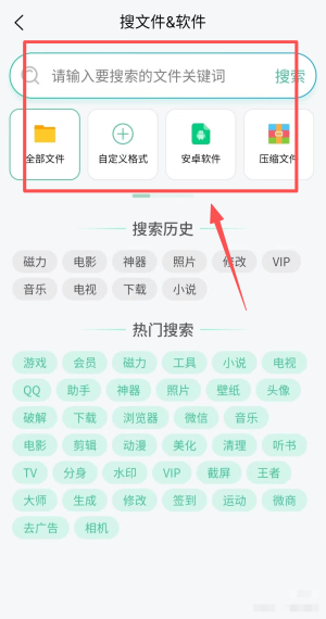 2、输入关键词选安卓压缩等格式,热门搜索标签助你精准定位。