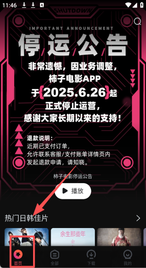 2、查看停运公告,了解应用的最新动态和重要信息。