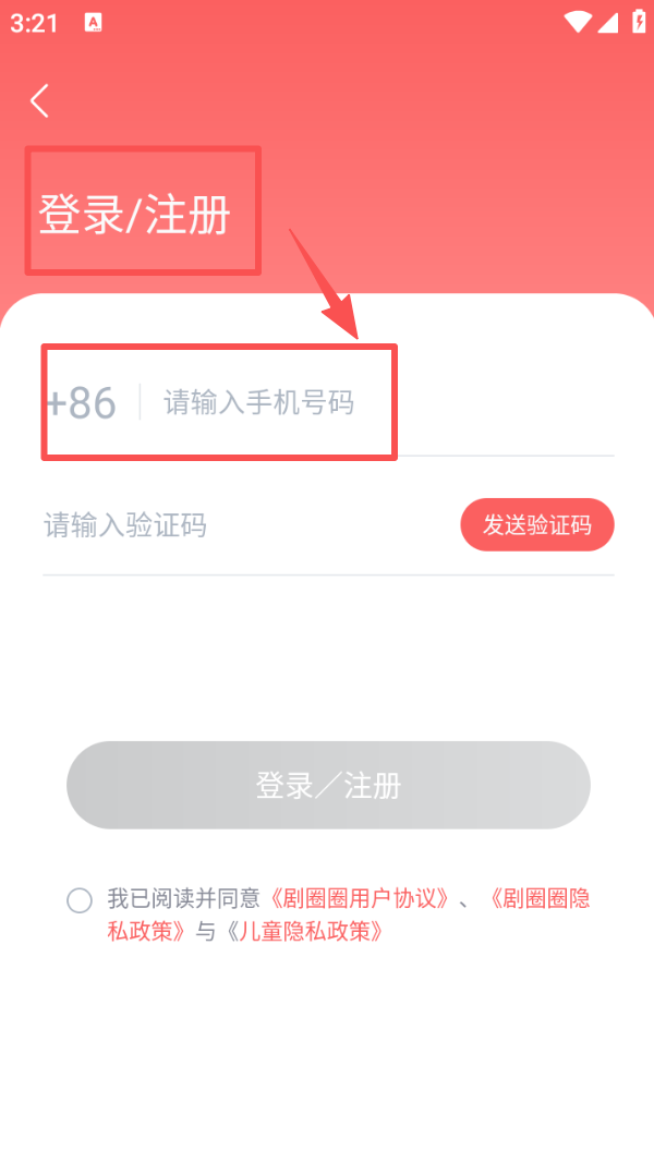 4、若需登录账号,点击 “登录 / 注册”,输入手机号码及验证码完成登录流程。
