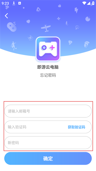 4、在忘记密码页面,依次填写注册时的“邮箱号”,点击“获取验证码”并填入收到的验证码,再设置“新密码”,完成后点击“确定”即可重置密码。