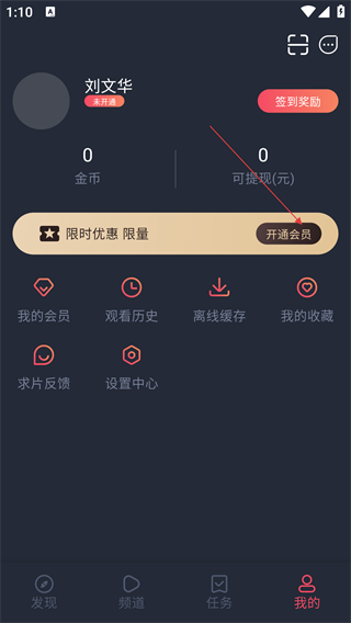 2、在个人界面,找到【开通会员】入口,可进入会员开通页面,享受会员专属权益。