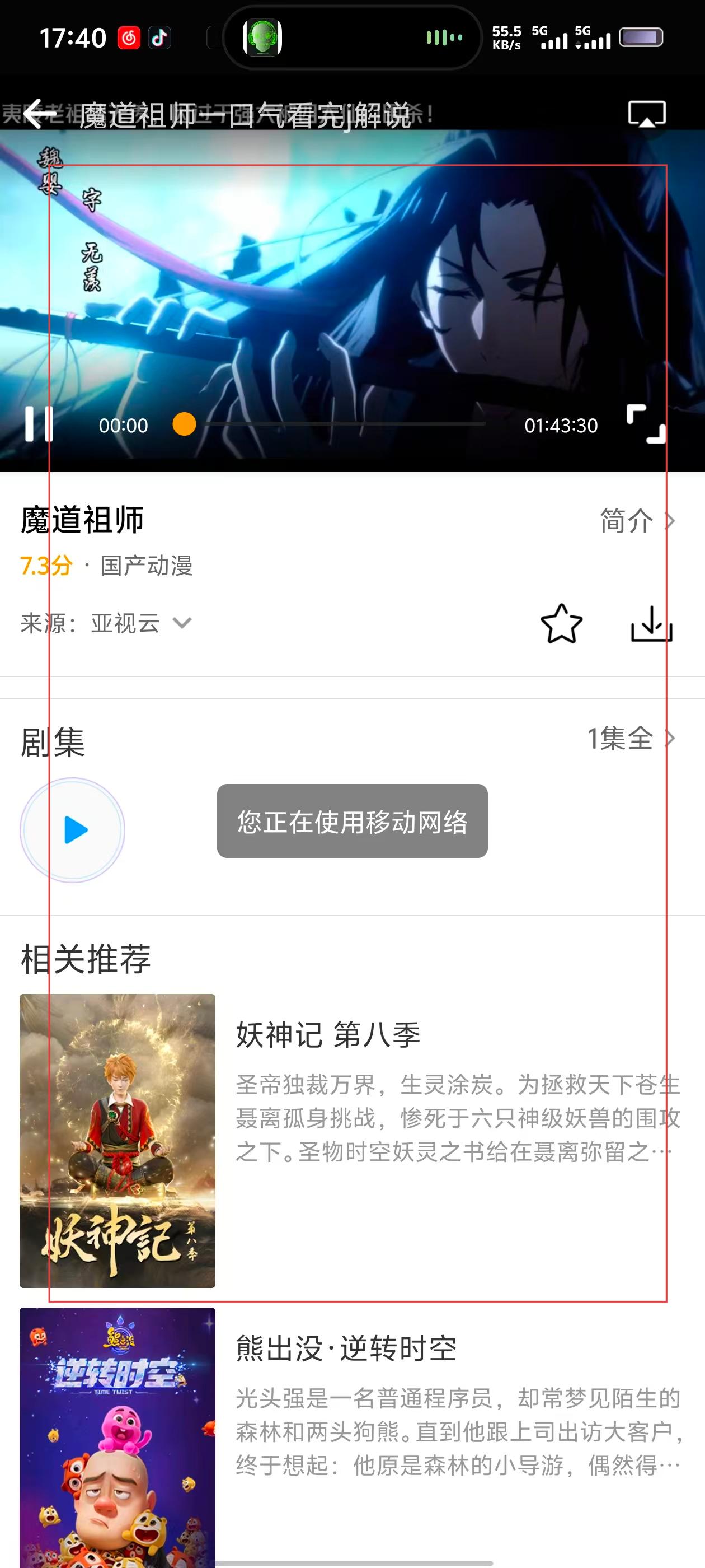 3、在播放记录界面,可查看之前观看过的影视作品记录,如《魔道祖师一口气看完解说》等。